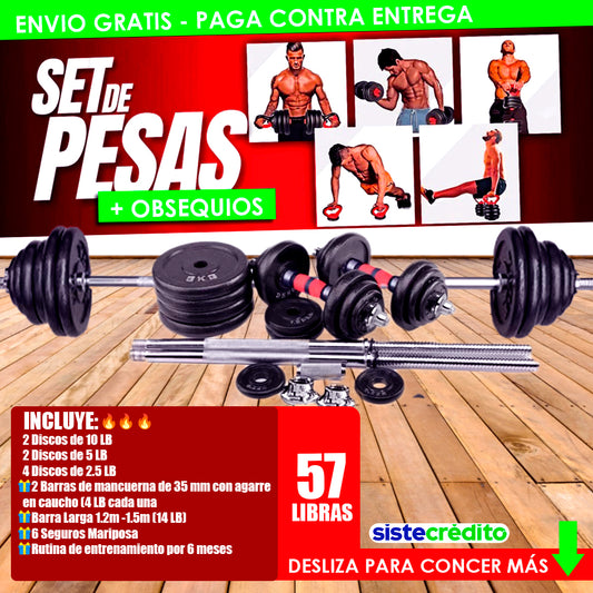 💪🔥 Gimnasio en casa: Kit de Mancuernas y Pesas en HIERRO FUNDIDO Y ACERO CROMADO🏋️♂️Fuerza, potencia y resultados💥