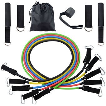 Bandas Elásticas Tubulares - Kit x5 Niveles + Accesorios Fitness