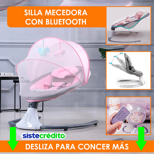 👶¡Nueva! Silla MECEDORA PREMIUM AUTOMÁTICA 5 Velocidades con BLUETOOTH y protección ANTI MOSQUITOS para Bebé