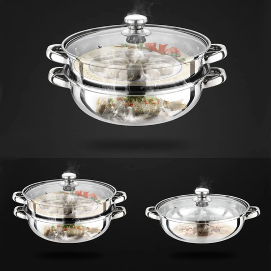 Juego De 2 Ollas De Vapor De Acero Inoxidable