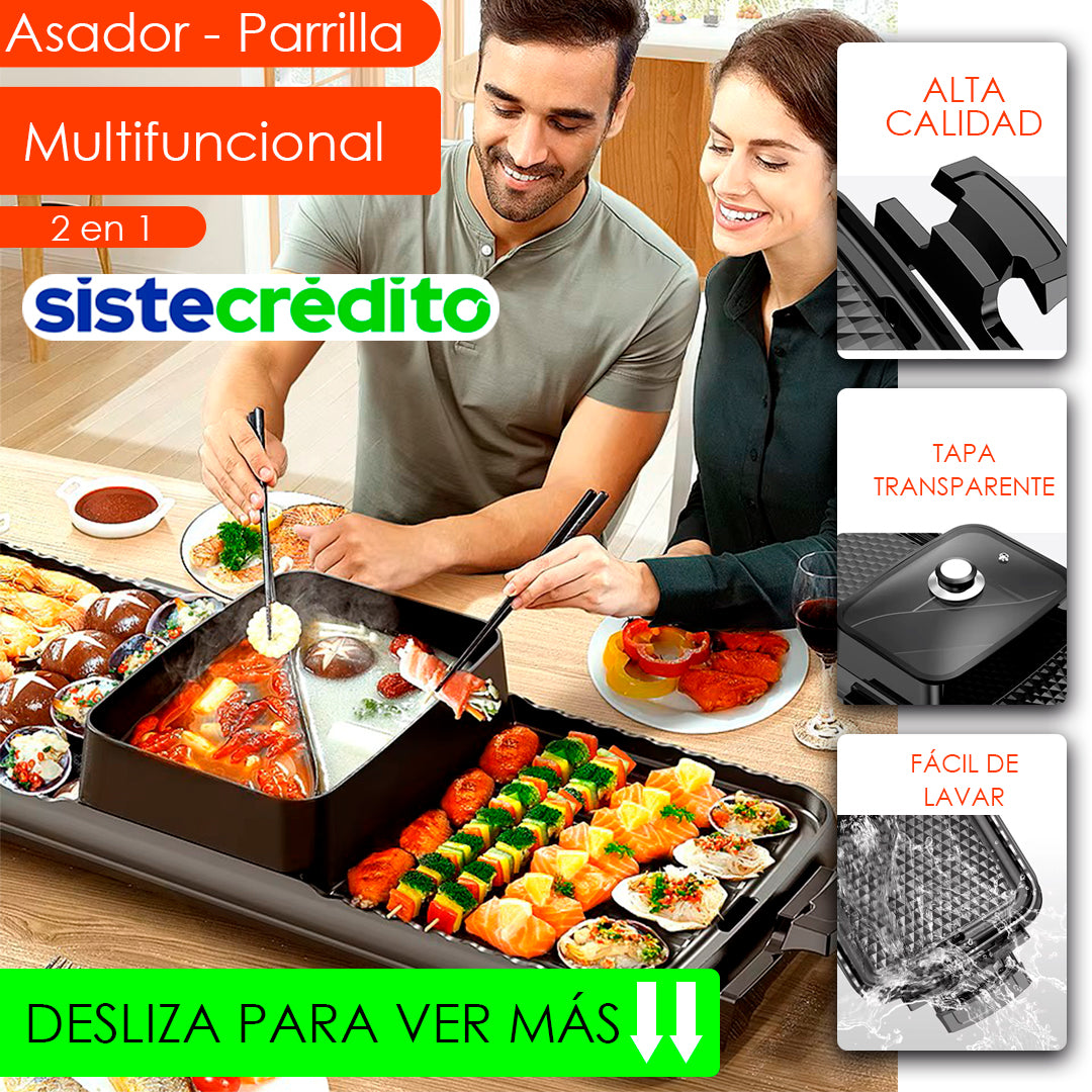 Asador Parrilla Multifuncional 2 en 1 para barbacoa de doble propósito, la placa para hornear es adecuada para todo tipo de carne, verduras, mariscos, etc. satisfacer tus dos necesidades de sabor diferentes al mismo tiempo. y disfruta del impacto de las papilas gustativas traídas por la olla caliente y la barbacoa.