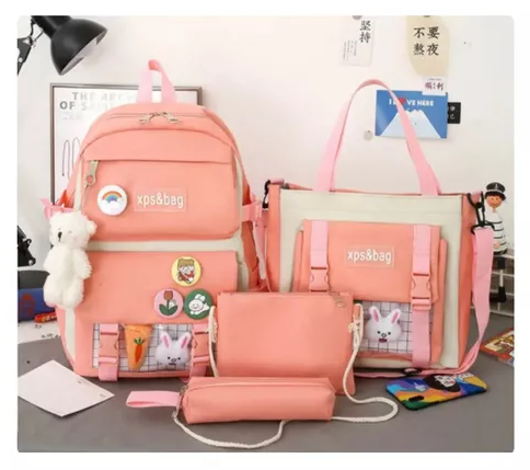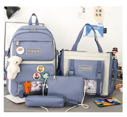 Juego 4 en 1 de mochilas con colgante bonito para mujer, mochila de viaje de ocio de lona de gran capacidad, mochila escolar de moda para estudiantes universitarios para niñas