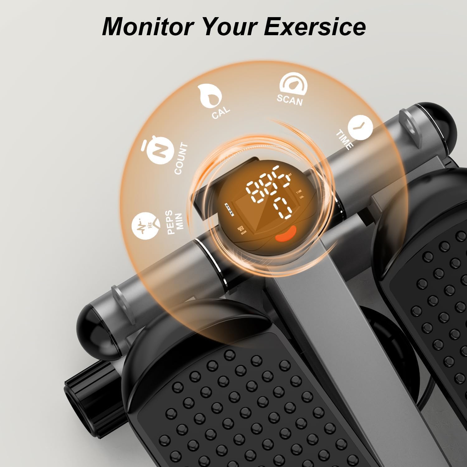 - Rastrea tu progreso: el monitor LCD del mini stepper registra claramente el tiempo de ejercicio, los tiempos, el consumo total de calorías y la distancia.