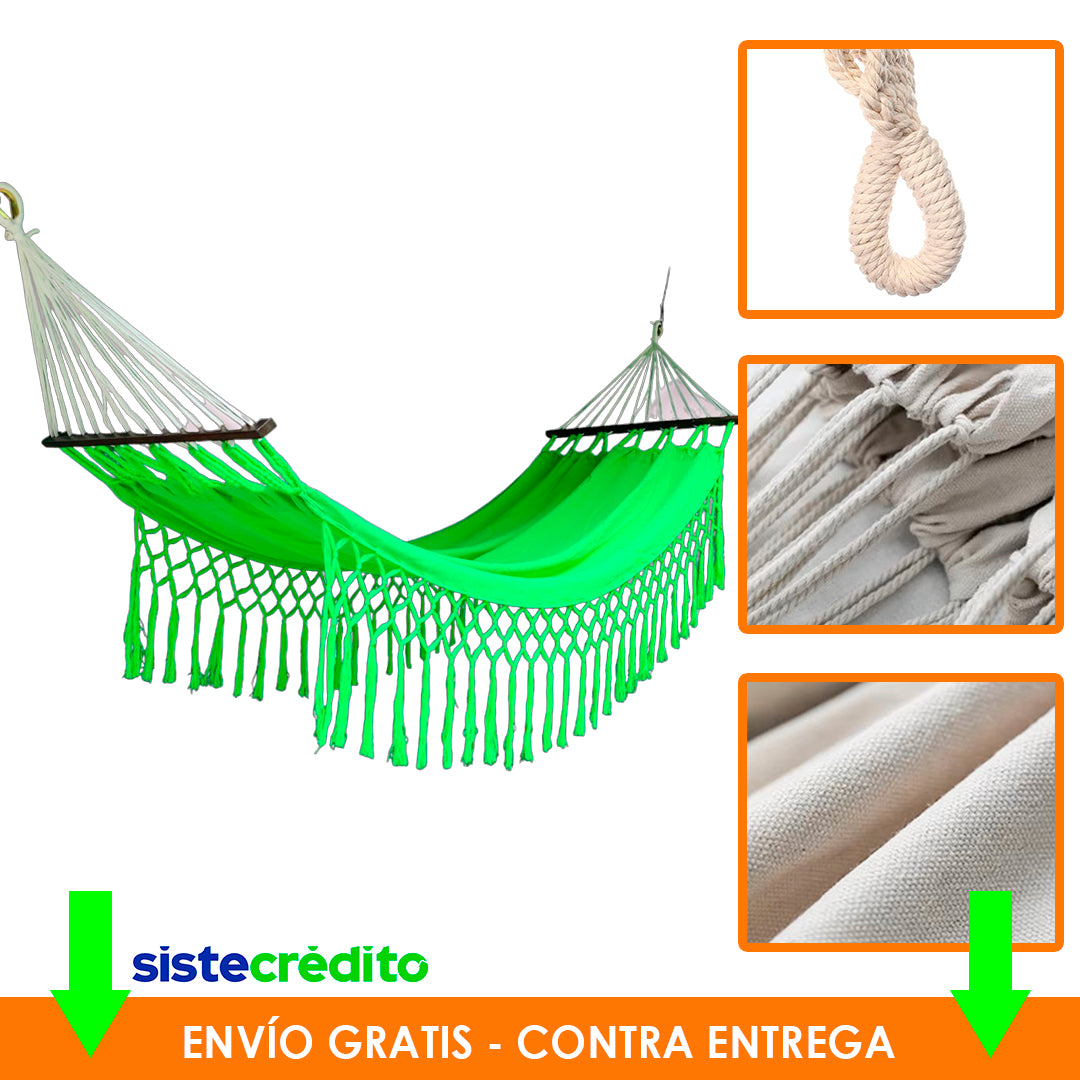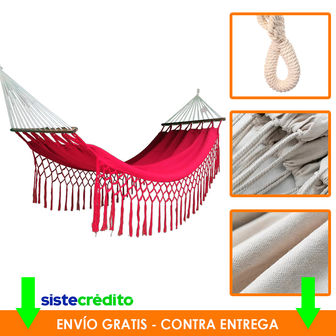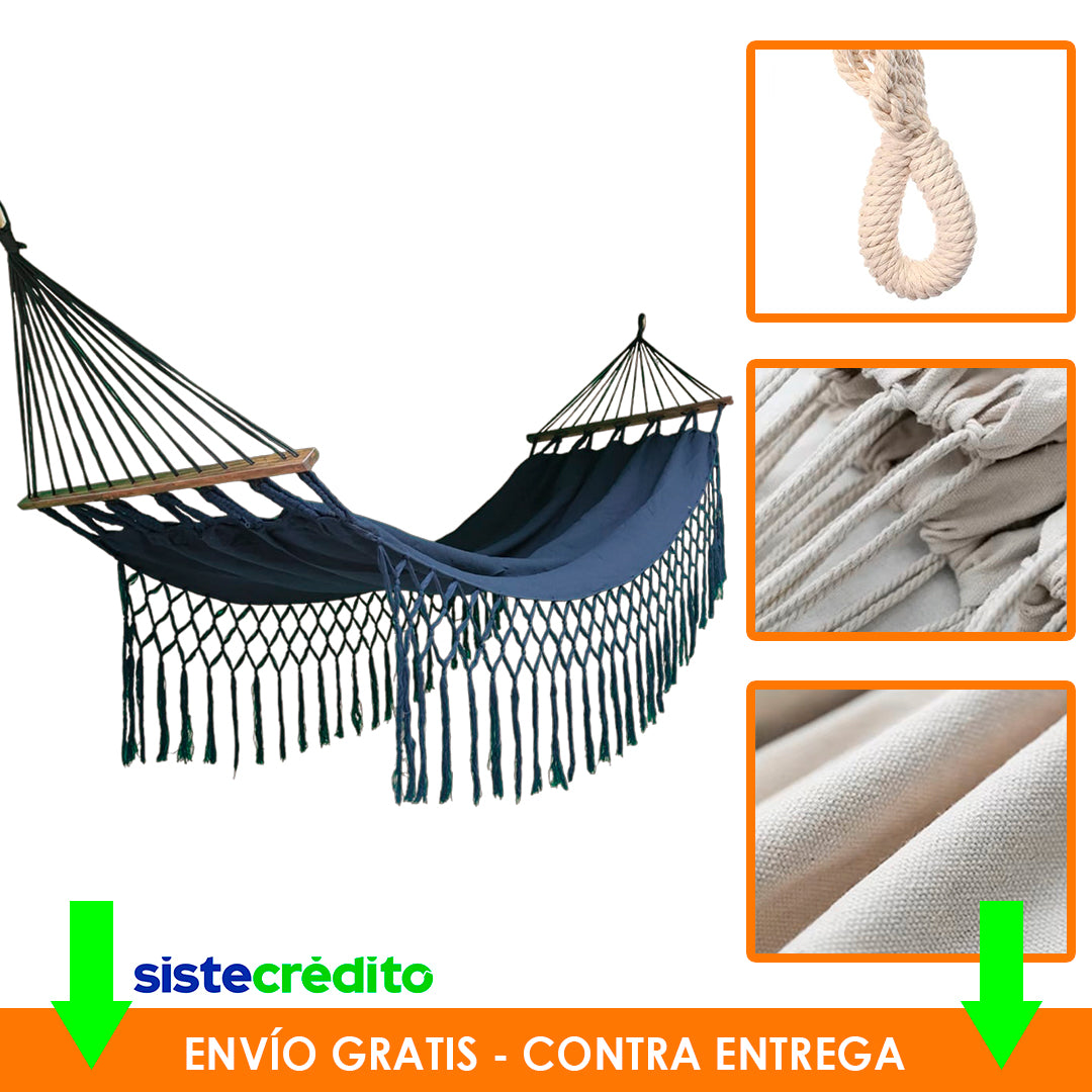 Relájate como nunca antes con nuestras hamacas con palo 100% artesanales, tejidas a mano con materiales de alta calidad y disponibles en una variedad de colores vibrantes. Diseñadas para brindar el máximo confort y resistencia, son ideales para jardines, terrazas, patios o cualquier rincón donde quieras desconectarte.