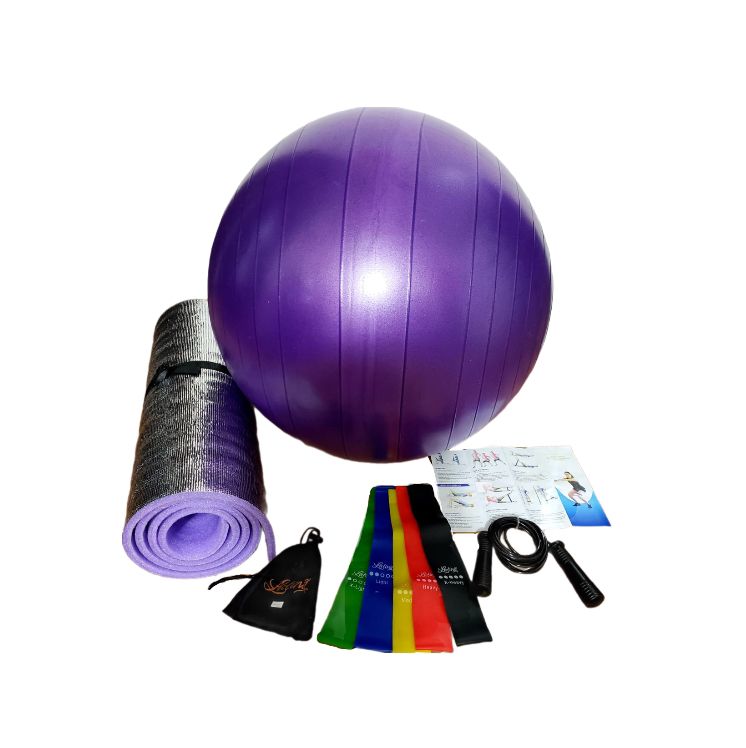 balón de pilates de 75cm, disponible en color Azul, morado, gris y fucsia