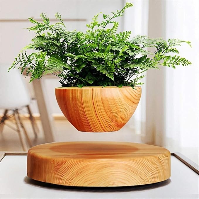 La característica más impresionante de esta maceta es su tecnología de suspensión magnética. La maceta flota y gira 360 grados en el aire cuando la energía está activada, lo que la convierte en una pieza decorativa completamente fuera de lo común. La suave rotación no solo embellece el entorno, sino que también crea un efecto relajante. Es la manera perfecta de destacar tus plantas favoritas mientras agregas un toque de magia a cualquier espacio.