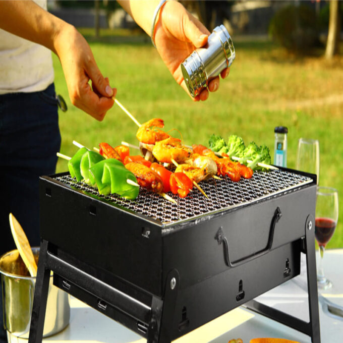 - Hecho de acero inoxidable y materiales de hierro, superficie de procesamiento fino, la parrilla de barbacoa de carbono tiene una gran resistencia a la corrosión, resistencia a los arañazos.